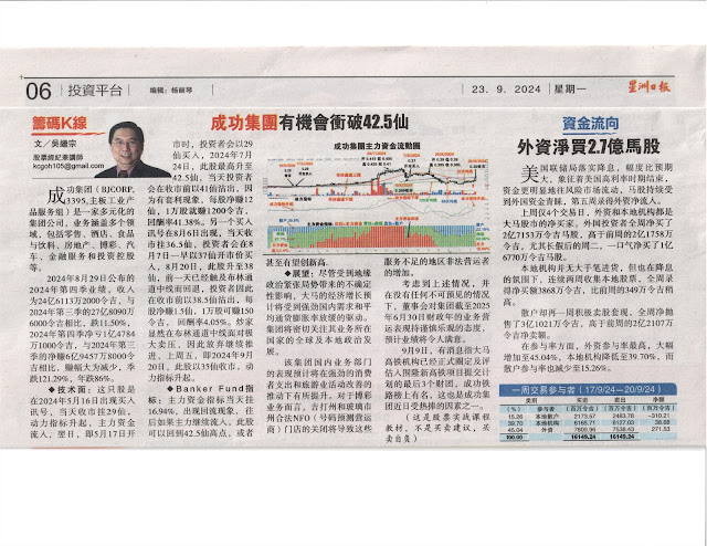 - 吴继宗吴老师在星洲日报和星洲网的吴继宗【财经专栏-筹码K线】于2024年9月2日发表的文章: