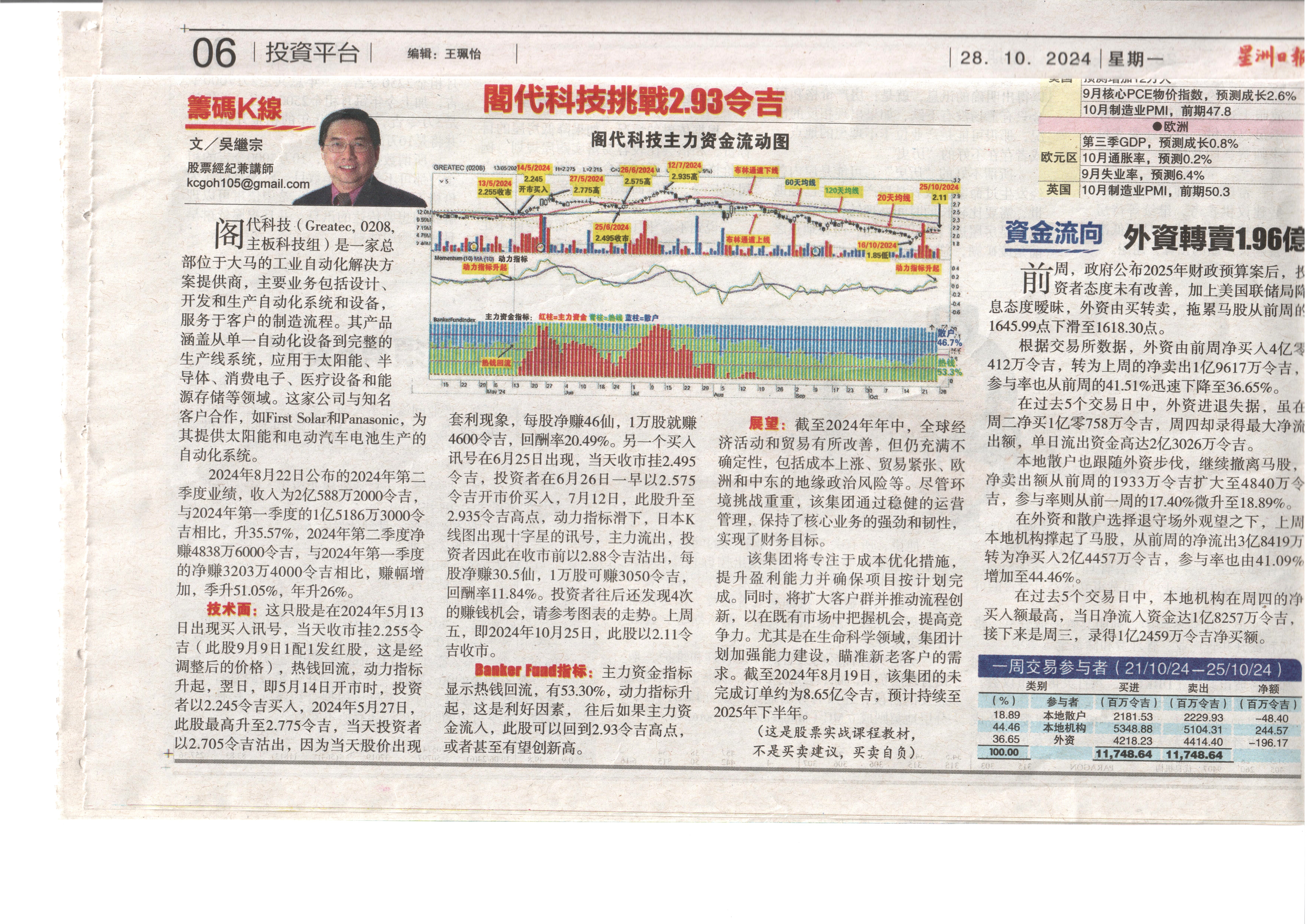 吴继宗【财经专栏-筹码K线】于2024年10月28日发表的文章:阁代科技 (Greatec, 0208,主板科技组)